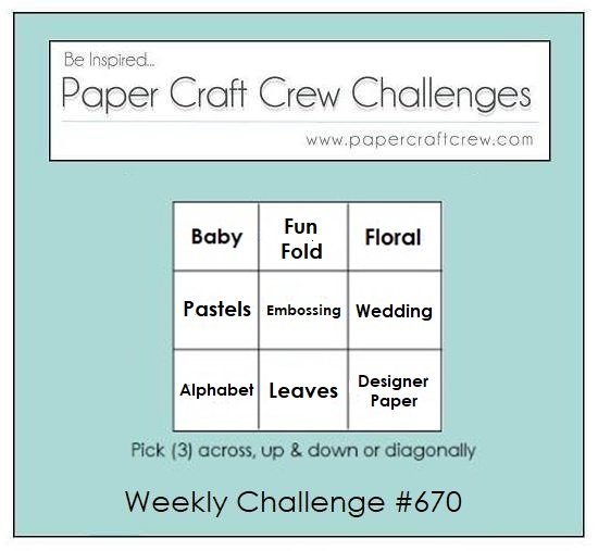 - Display our challenge image in your post, and link it back to the Paper Craft Crew site in your post. Please use keyword PCC669.