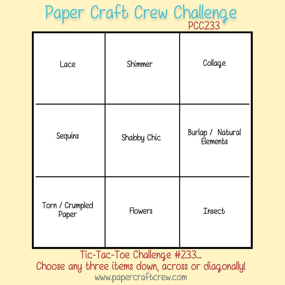 Welcome to Tic-Tac-Toe Challenge #233. The Paper Craft Crew Design Team can’t resist a challenge and sharing projects to help inspire you in your creative endeavors. Come back every Wednesday for a fun, new challenge!