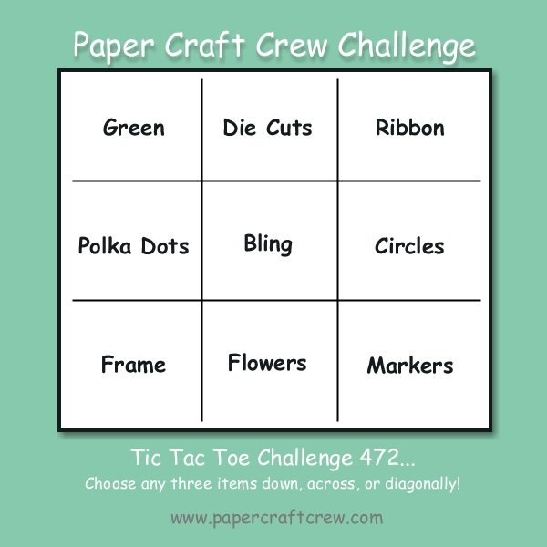 Welcome to the Tic Tac Toe Challenge #472 with the Paper Craft Crew. Join the fun! Play along by creating a papercraft themed project inspired by the chart. The design team is ready to inspire with the amazing projects they are sharing. So, check out the samples, click on the links for more information, then head to your crafty space to play along!