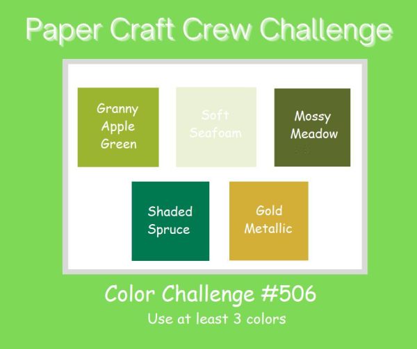 Welcome to the Color Challenge #506 with the Paper Craft Crew. Join the fun! Play along by creating a papercraft themed project inspired by the colors. The design team is ready to inspire with the amazing projects they are sharing. So, check out the samples, click on the links for more information then head to your crafty space to play along!