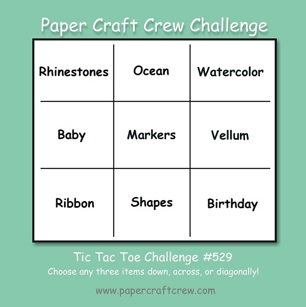 Welcome to the Tic Tac Toe Challenge #529 with the Paper Craft Crew. Join the fun! Play along by creating a papercraft themed project inspired by the board. The design team is ready to inspire with the amazing projects they are sharing. So, check out the samples, click on the links for more information then head to your crafty space to play along!