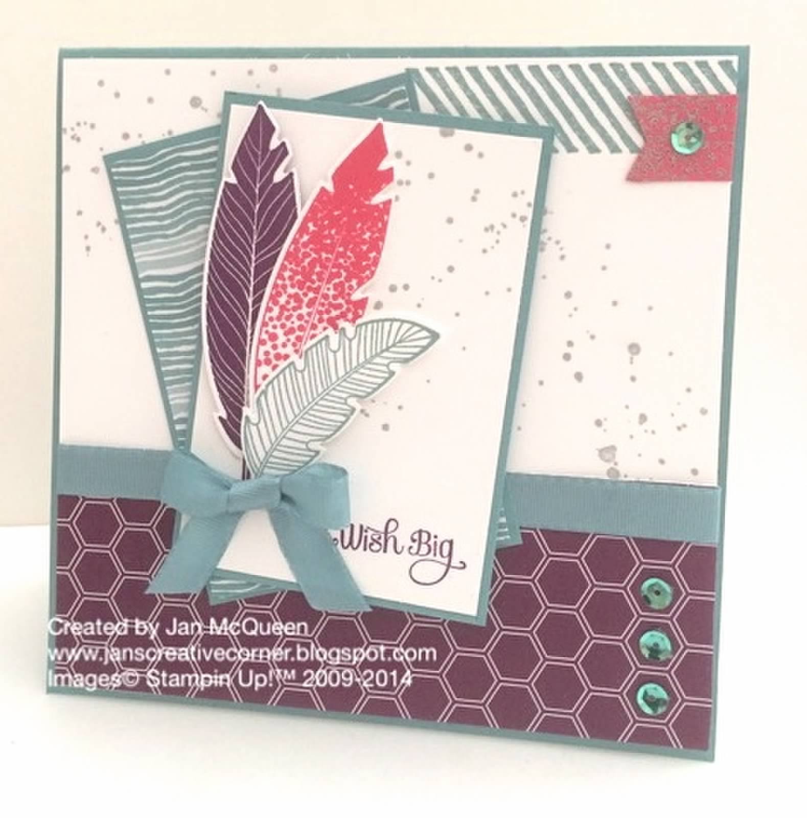All members of the Paper Craft Crew Design Team are Stampin' Up! Demonstrators and as such, we LOVE to see a minimum of 3 Stampin' Up! products or stamped images used on your card but don't let that stop you from participating. Whether or not you use Stampin' Up! products on your card, we still want you to participate and know that you are still eligible to be a Featured Artisan.