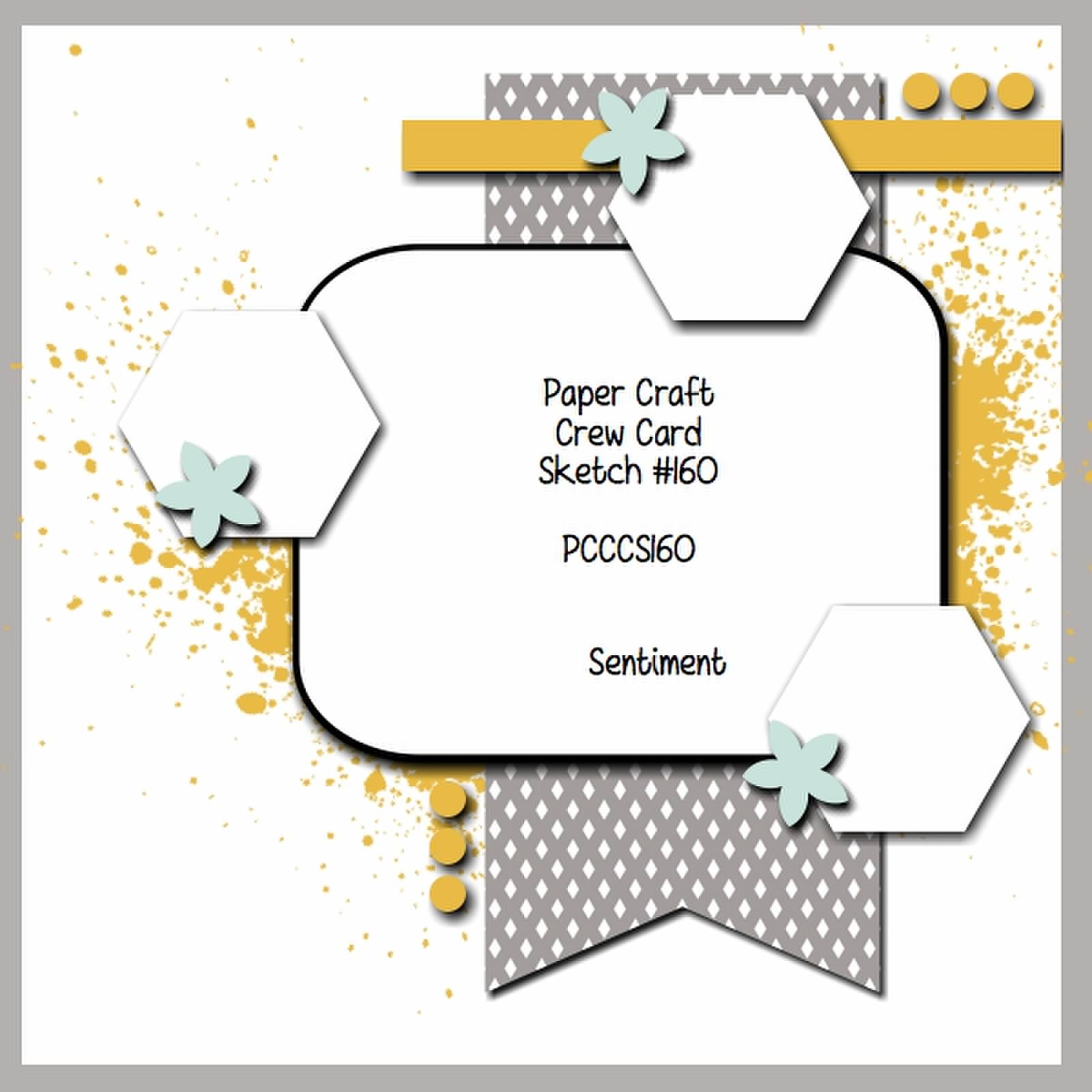 Welcome to Card Sketch #160 with the Paper Craft Crew. We look forward to seeing your creations this week. As I mentioned last week, the Paper Craft Crew is excited (at least we hope it is exciting and that you’ll be as excited as we are…), we are going to be mixing things up a bit by throwing in some different challenges.